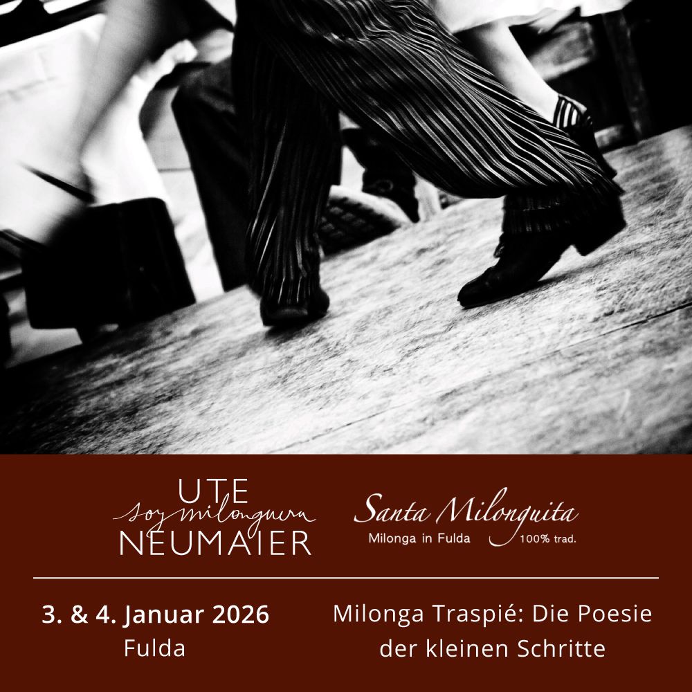 Wir konnten Ute Neumeier aus Buenos Aires gewinnen für ein Workshop-Wochenende mit einer Milonga Solidaria als Abschluss am 4. Januar. Mehr dazu bald hier, an dieser Stelle.